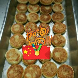 2.The electric baking pan is heated to 180 degrees! Spread the oil! Put on the cake!