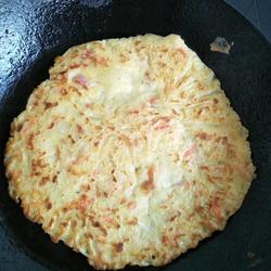 2.Put the noodles in, add water and mix into a paste, add eggs, and add one or two drops of sesame oil