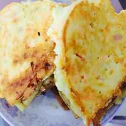 2. Add oil, pour the prepared ingredients into the mold and wait until it is formed.Take out the mold and fry until both sides are golden.