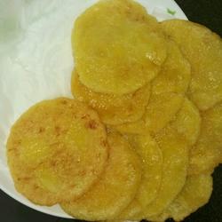 7.Use a non-stick nest to fry, pour oil into the nest to heat, and add pumpkin Fry the cake on low heat.