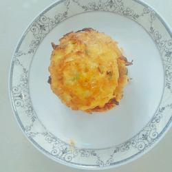 4.Pour a pot Layer a thin layer of oil, then use a spoon to scoop out an appropriate amount of pumpkin flour paste into the pot, and press it into a round cake shape, fry both sides until golden brown, then take it out and eat