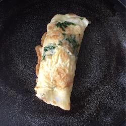 3. Beat the eggs, pour into the electric baking pan, spread into a cake shape and sprinkle with coriander, rest without breaking the cake