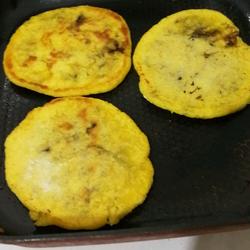 4. Divide the dough into dough balls and wrap them like buns, Dianci Brush the oven pan with a layer of oil, put down the wrapped corn bag, and gently press it into a thin cake with your hands.Then make the second and third ones, brush them with another layer of oil, and turn them all over.Just fry both sides until they are brown