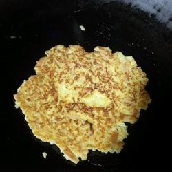 4. Put the pan into the pan and fry it.Use a spatula to slowly spread the pancake and fry it slowly over low heat.After the bottom pancake is formed, turn it over and fry until golden.