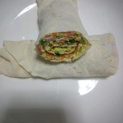 5. After the egg liquid is cooked over low heat, roll the cake into a roll and start eating