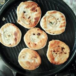 2.Sprinkle with chopped green onion, oil, sesame seeds and fennel