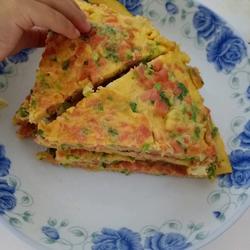 4. Heat the oil until the oil temperature reaches a certain level.Pour the previously mixed egg liquid into the pot.Don’t make the fire too high.Once the egg pancake changes color and becomes hard, you can remove it and put it on a plate.