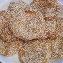 4. Divide into even portions, roll into balls and dip in sesame seeds to make cakes