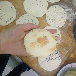 2. Divide the large dough into small portions and add sesame seeds one by one.