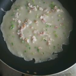 4. Bring the pan to a boil, brush the bottom of the pan with oil, pour in the batter, try to be as thin as possible, and it tastes good A little