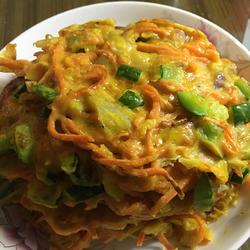 1. Prepare everything, shred the carrots, chop the onions, cut the cucumbers into small pieces, beat the eggs, add salt, dried shrimps, some sesame oil and a little water, stir evenly