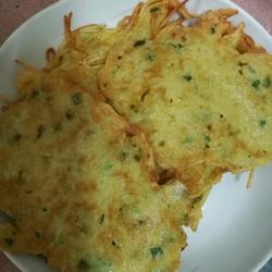 1.Put the potatoes Peel and grate, cut green onion into flowers