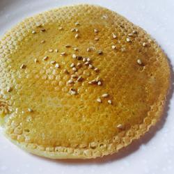 8. Just start the non-stick pan over low heat, no need to add oil, use a spoon to scoop it out Just spread the batter into pancakes, it’s also good to sprinkle some sesame seeds