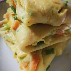 4. Heat a pan, grease the bottom of the pan with oil, pour a spoonful of batter into an even layer, and fry over low heat until golden brown on both sides