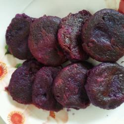 2.Cook the purple sweet potato and mash it, add flour, sugar and a little oil and mix well