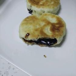 4. Roll out the dough one by one, wrap it with brown sugar filling, and make it into a round cake shape.Heat oil in a pan, add the round cake, and fry both sides until golden , cooked