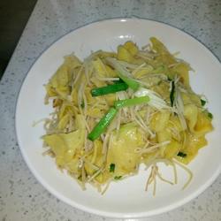The egg pancakes already have salt, so stir-fry the enoki mushrooms Don’t add too much salt when sprouting garlic