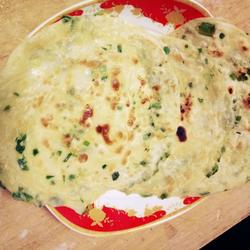 2.Press one sheet at a time, brush with oil, sprinkle with salt and chopped green onion