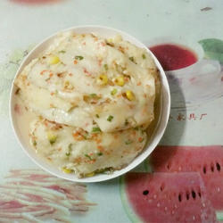 • 1.Prepare the ingredients first, break the eggs, put them in a larger container, beat the eggs, add carrots, corn, chives, sugar, salt, and flour and stir them together evenly.