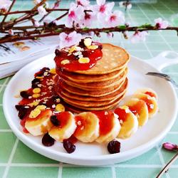 8. Make sure the waffles are cooked well and fall together.Put it on a plate and cut a few banana slices for decoration.Sprinkle some dried cranberries for decoration.If you have other fruits for decoration, you can also