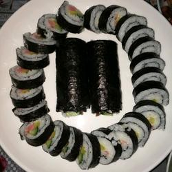 2.Combine the steamed rice with sushi vinegar or apple cider vinegar and spread it evenly.Place your favorite side dishes, salad or tomato sauce on the bamboo curtain