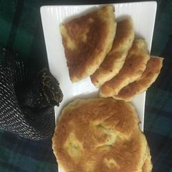 2. Heat the oil pan and pour in the oil.Apply oil with your hands, grab a piece of noodles and press it flat before placing it in the pan.Gently stretch it with your hands, not too thick in the middle.It must be thin!