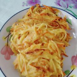 I made it with an electric baking pan, which can be heated on both sides.If you are afraid of burning, you can add a little more oil.Don't make it too thick, otherwise the outside will be burnt and the potato shreds in the middle will not be cooked.