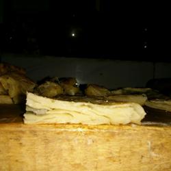 6. Roll out the dough and apply scallion oil.