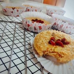 1.Take two bananas and twist them into puree with a spoon, then add two eggs, a pinch of salt, an appropriate amount of sugar according to personal preference, add two tablespoons of flour, a small box of yogurt, three tablespoons of oats, Half a bag of milk.Stir evenly, put in a paper cup, sprinkle with blueberries, raisins, dried cranberries and other decorations