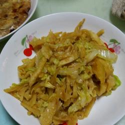 6. When the cabbage is soft, add pancakes Stir fry the shreds for a few times