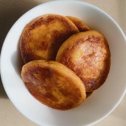 5. Heat the pan with peanut oil, put in the pumpkin cake and start frying.Be sure to pay attention to the heat, it is very easy.To fry the batter, I used medium heat and stirred it back and forth.