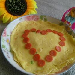 6. Pour a little vegetable oil into the non-stick pan, then pour in an appropriate amount of batter, and gently turn the pan to make the batter evenly thick