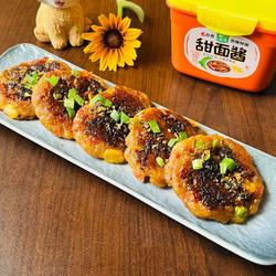 Corn kernels ( 1 spoon ) | Carrot ( 1 root ) | Sweet noodle sauce ( 1 spoon ) | Starch ( 1 spoon ) |