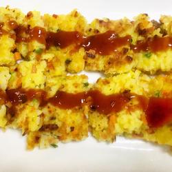 11. Remove from the pan, cut into pieces and place on a plate, sprinkle with tomato sauce , swallow and start eating