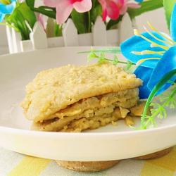 9.Pour in the apple and egg paste and fry slowly over low heat