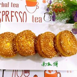 8.The golden pumpkin pie is ready, add biscuits together, it is especially crispy