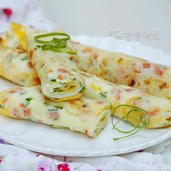 The diced ham and chopped green onion can be added directly to the batter and mixed well before frying, but the crust obtained in this way will not look as good as the one after adding it.