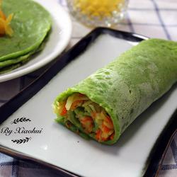 11.Spinach Cake Roll up the fried potatoes and carrot shreds and enjoy.