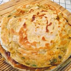 3. Roll the dough to the size shown below, pour in vegetable oil and spread evenly.Sprinkle with crushed sesame seeds and scallions