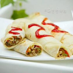 1. Finished product picture.The dish with curls inside is cold salad! You can refer to my recipes "Cold Sweet Potato Flour" or "Cold Bean Curd".Of course, you can also add ham, lettuce, salad dressing, chicken, etc.to roll it up and eat it! Use your imagination!