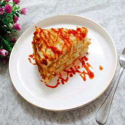 9.Pour in the lotus root paste, flatten it with a shovel, and fry over low heat