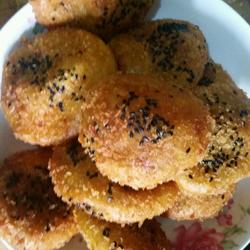 6.Press into a cake shape, first dip it in a little sesame seeds, and then dip it in bread crumbs.