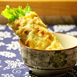 12.Tear the opening from the edge and pour the egg liquid into the cake.