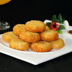 12. Roll the dough filled with egg liquid into the bread crumbs.Cover with bread crumbs.