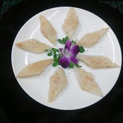 4.Cut the glutinous rice cakes into diamond shapes, then sprinkle with powdered sugar and serve