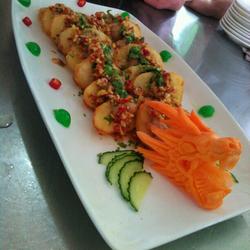 1.Wash the potatoes, steam them in a steamer and peel them, then press the potatoes into cakes