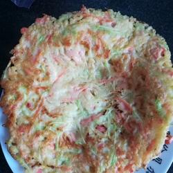 1.Grate the melon and carrot into thin strips, cut the ham into small dices, and put them together!