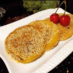 17. Heat the oil until it is 50% hot, add pumpkin cakes, fry until golden brown on both sides, take it out, don’t rush to eat, it is very hot