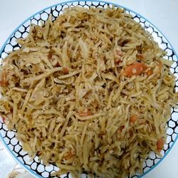 4.Put in 1 shredded cake and stir-fry to fully contact with the peanut oil