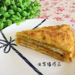 5. Stir the egg liquid and pour it evenly on top of the shredded potatoes.